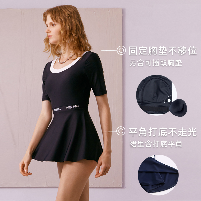 New] PRIDONNA one-piece swimsuit women's skirt-style gathered to show thin conservative boxer hot spring black and white swimwear