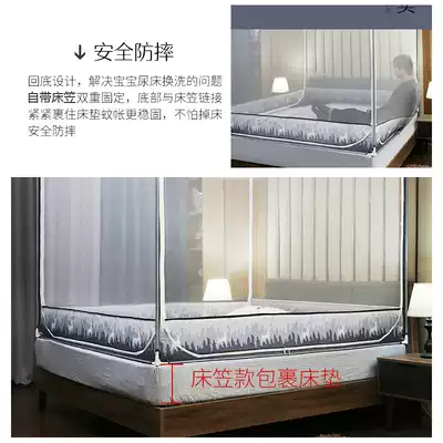 Three-door zipper sitting bed mosquito net 18 m bed yurt double 1 5m home 1 2 m encrypted thickening