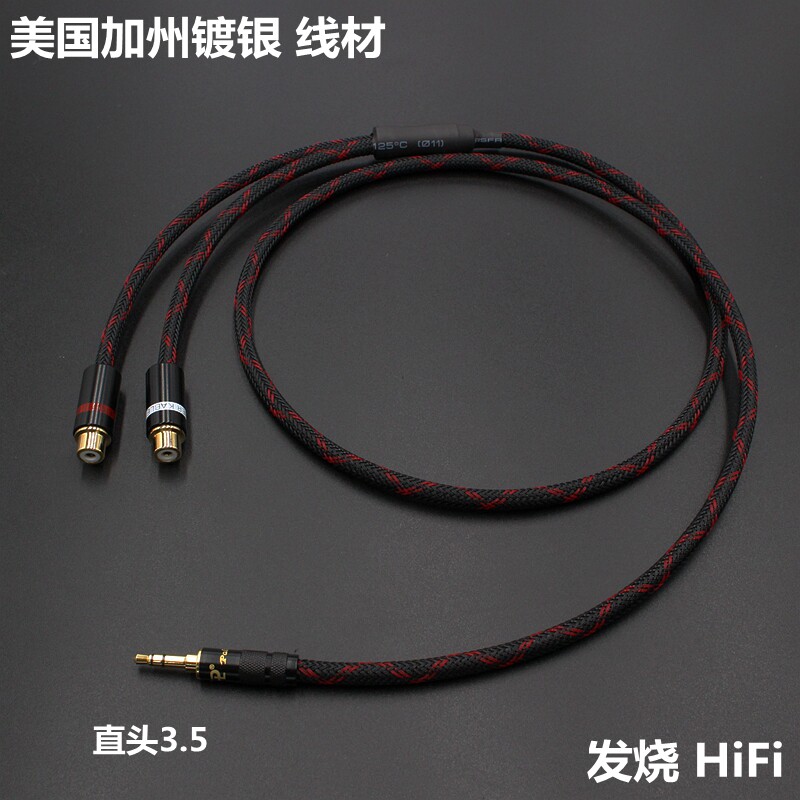 Fever silver plated 3 5mm turn one minute two RCA female double lotus audio line double lotus line 3 5 male turn 2rca female