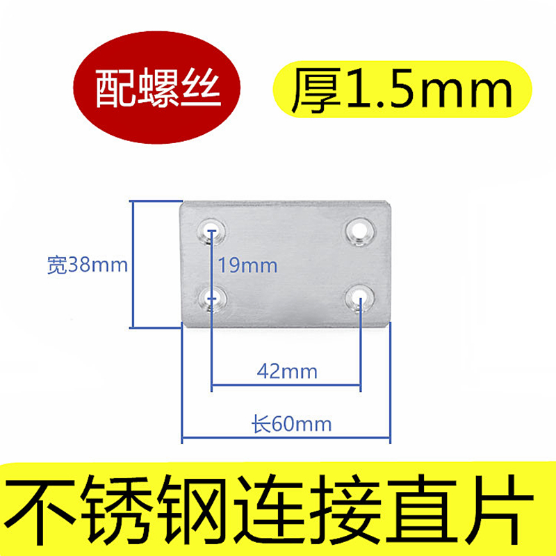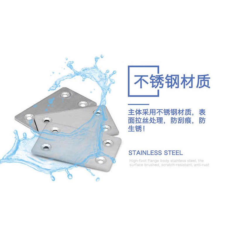 Stainless steel flat angle sheet 4 holes rectangular sheet steel 180-degree corner code lined with fixed piece connecting piece straight code 60