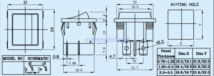 Original SOKEN Mastercard rocker switch RK2-02 rocker switch 24*21MM2 gear 4 feet with baffle