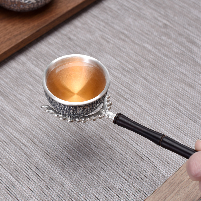 Silver Instrumental Era Pure Handmade Tea Dao Pure Silver Kung Fu Tea With Sandalwood Make Cup Fork Tea Road Accessories Tea Fork Cup Fork