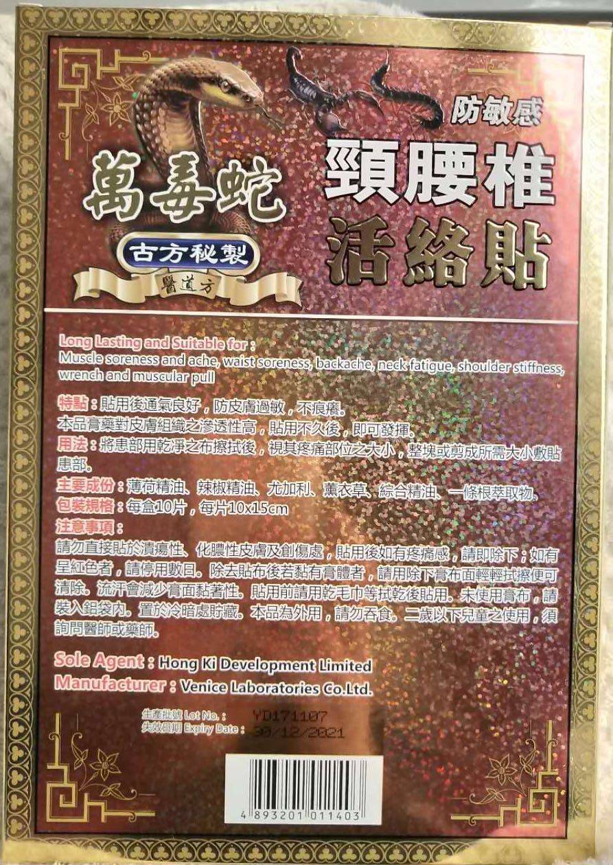 Hong Kong Venomous Snake Emperor neck and Lumbar vertebra active paste Shu tendon active joint strain temperature 10 pieces