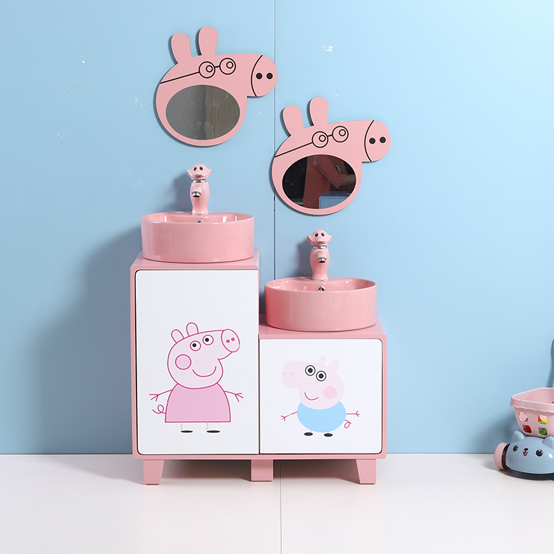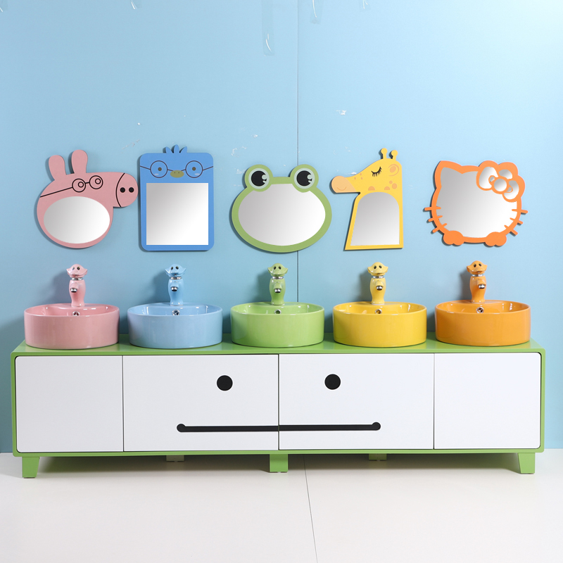 Children Handwashing desk Basin Cabinet Composition Ceramic Cartoon Kindergarten Color Washbasin Floor Type Bath Room Cabinet Washstand