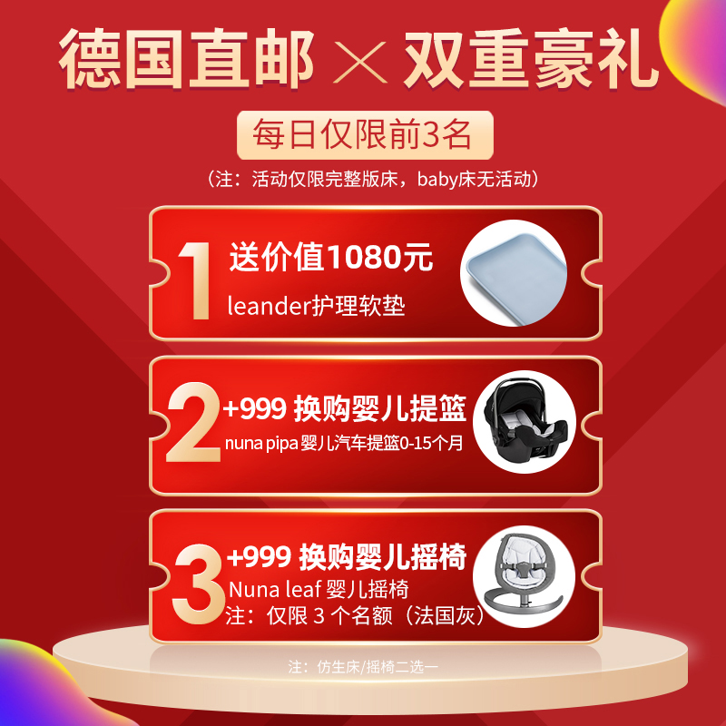 Special price log color complete bed 7369 BNP log bed COMFORT mattress send care mat BNP white bed COMFORT mattress send care mat KOKK gray bed COMFORT mattress send care mat KOBNB brown bed COMFORT mattress send care mat Premium mattress complete bed Organic mattress complete bed Germany complete bed + Organic mattress 9349 baby cot sheets 2 pieces 319 baby cot mattress 3802021 new bed circumference 623 hanging pole 650 bed curtain 384 queen bed guardrail four colors optional 960 + 999 yuan package tax 999 German direct mail complete bed + COMFORT mattress 8249 German direct mail complete bed + Premium mattress 8774 door-to-door installation service 299
