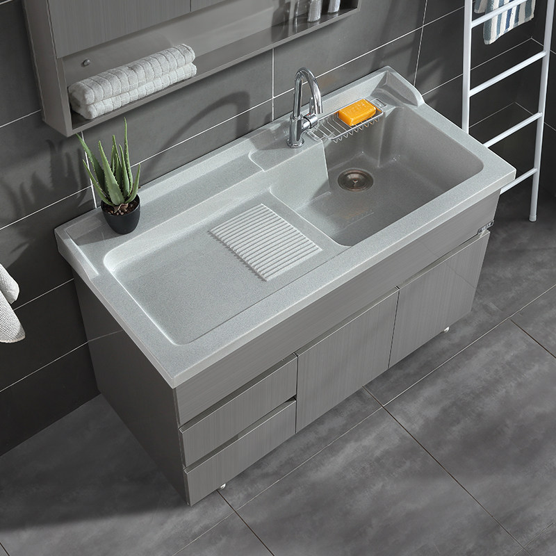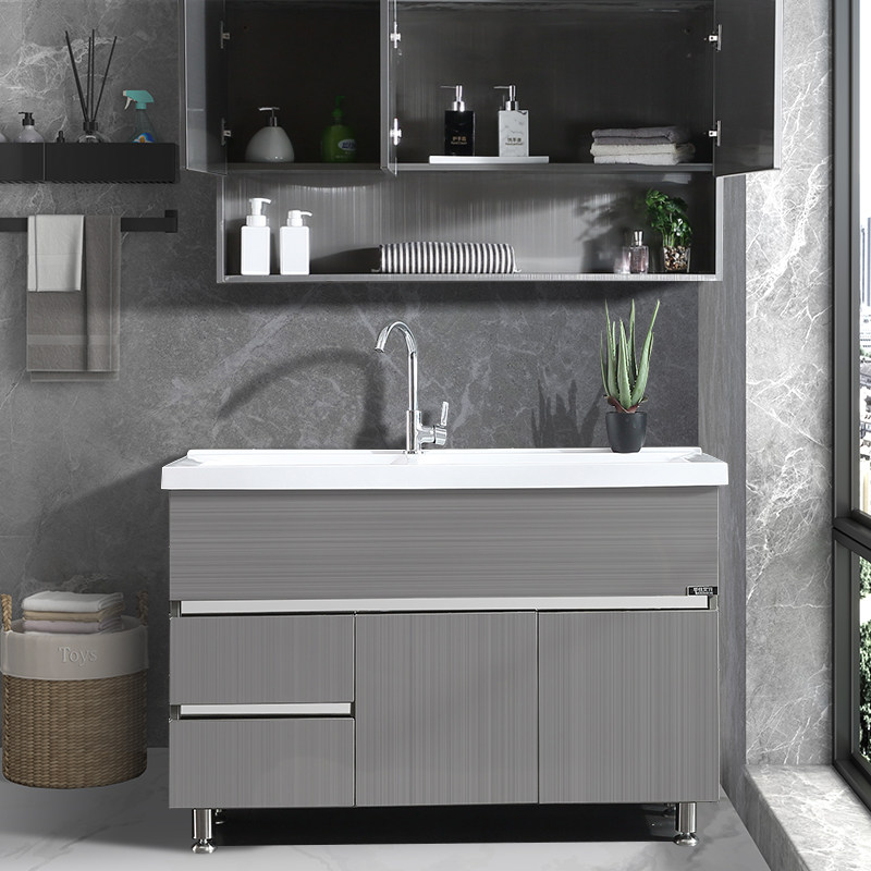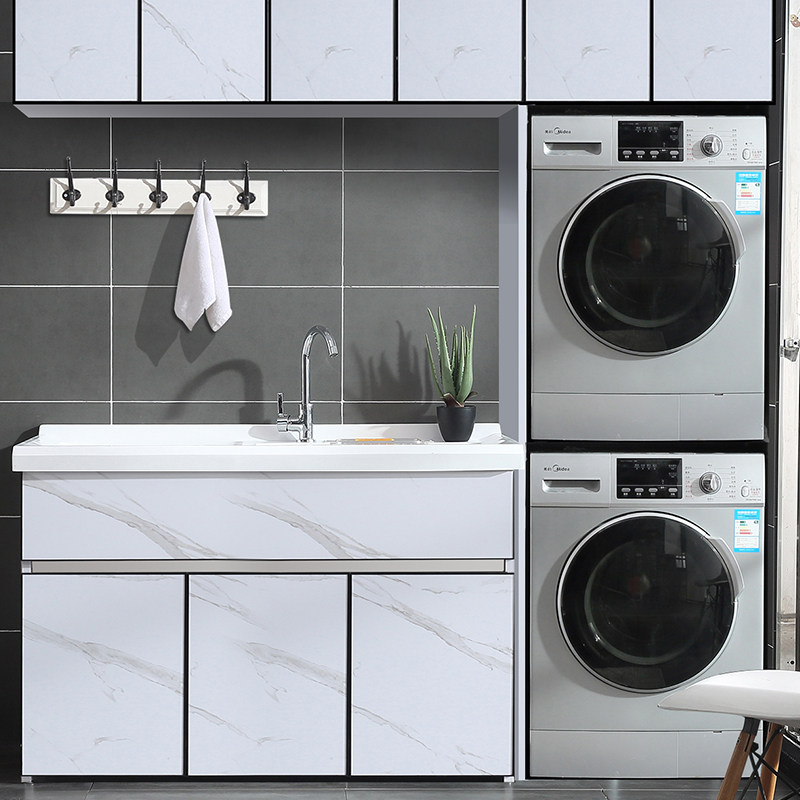 Huashi Aiken stainless steel double basin wash wardrobe combination with washboard balcony cabinet floor to ceiling bathroom cabinet laundry pool customization