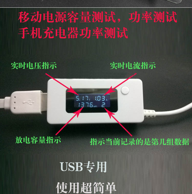 USB current meter USB voltage meter USB charging current voltmeter mobile power USB tester