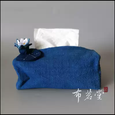 Bumingtang fabric Blue Lotus coaster tea pot mat extraction toilet paper set blue dyed plant dyeing hand-made fabric