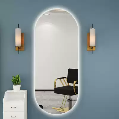 Hair dresser LED mirror with light European beauty salon touch screen wall-mounted hair salon elliptical hair cutting luminous mirror