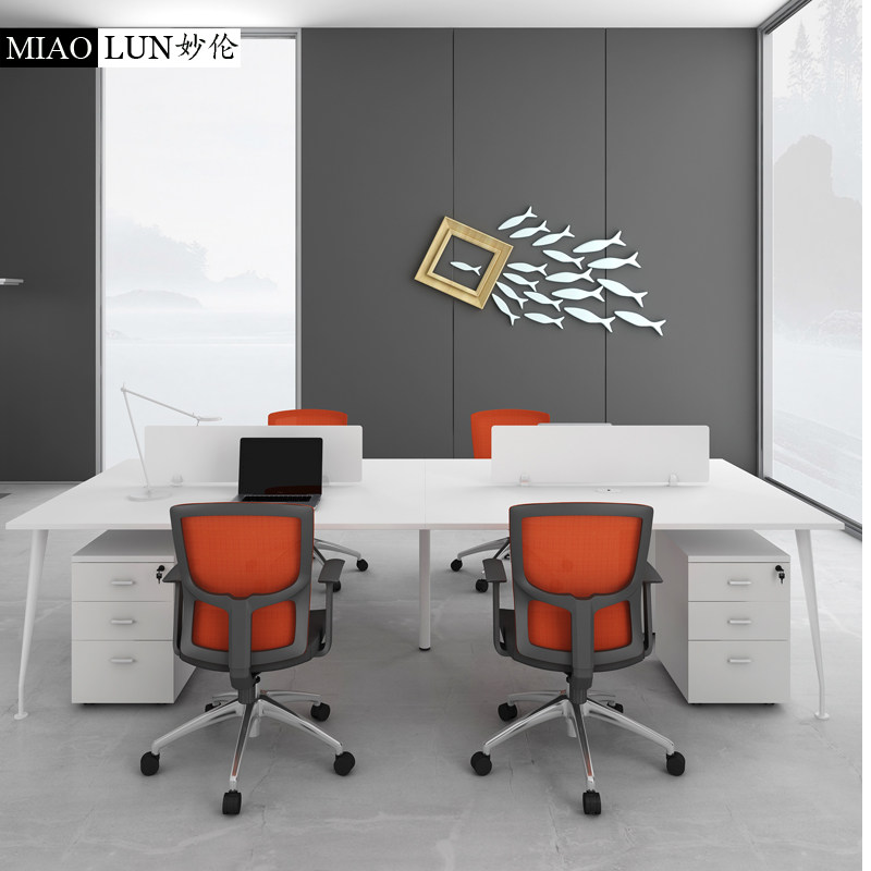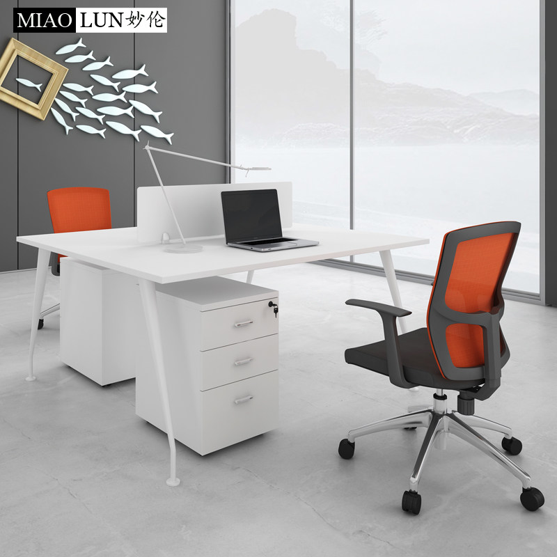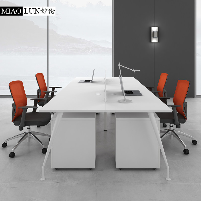 Staff Desk 4 Persons Office Furniture Brief Modern Working Position Staff Table 2 Persons With Screen Desk Chair