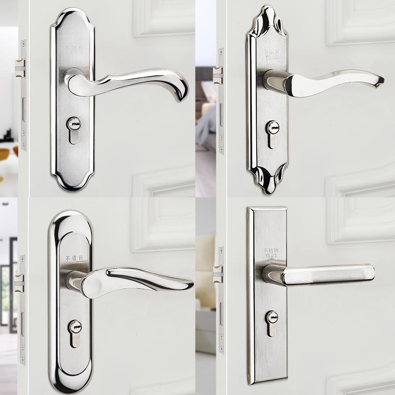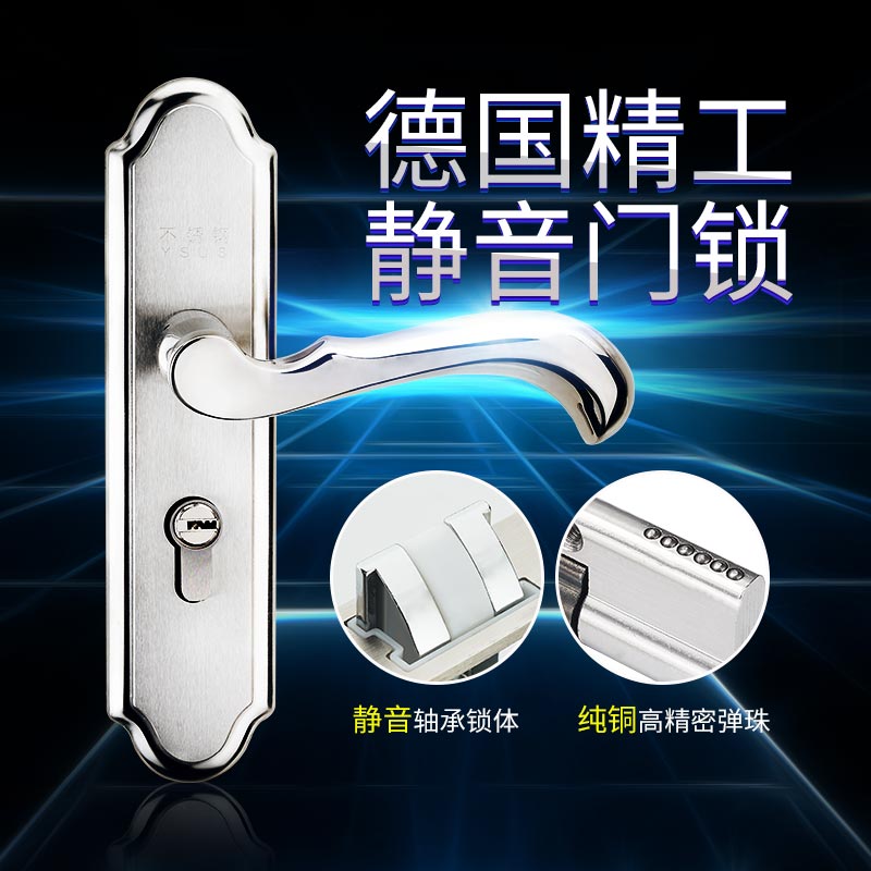 Modern simple stainless steel bedroom door lock mute wooden door Three-piece suit Room door Bathroom powder room hinge