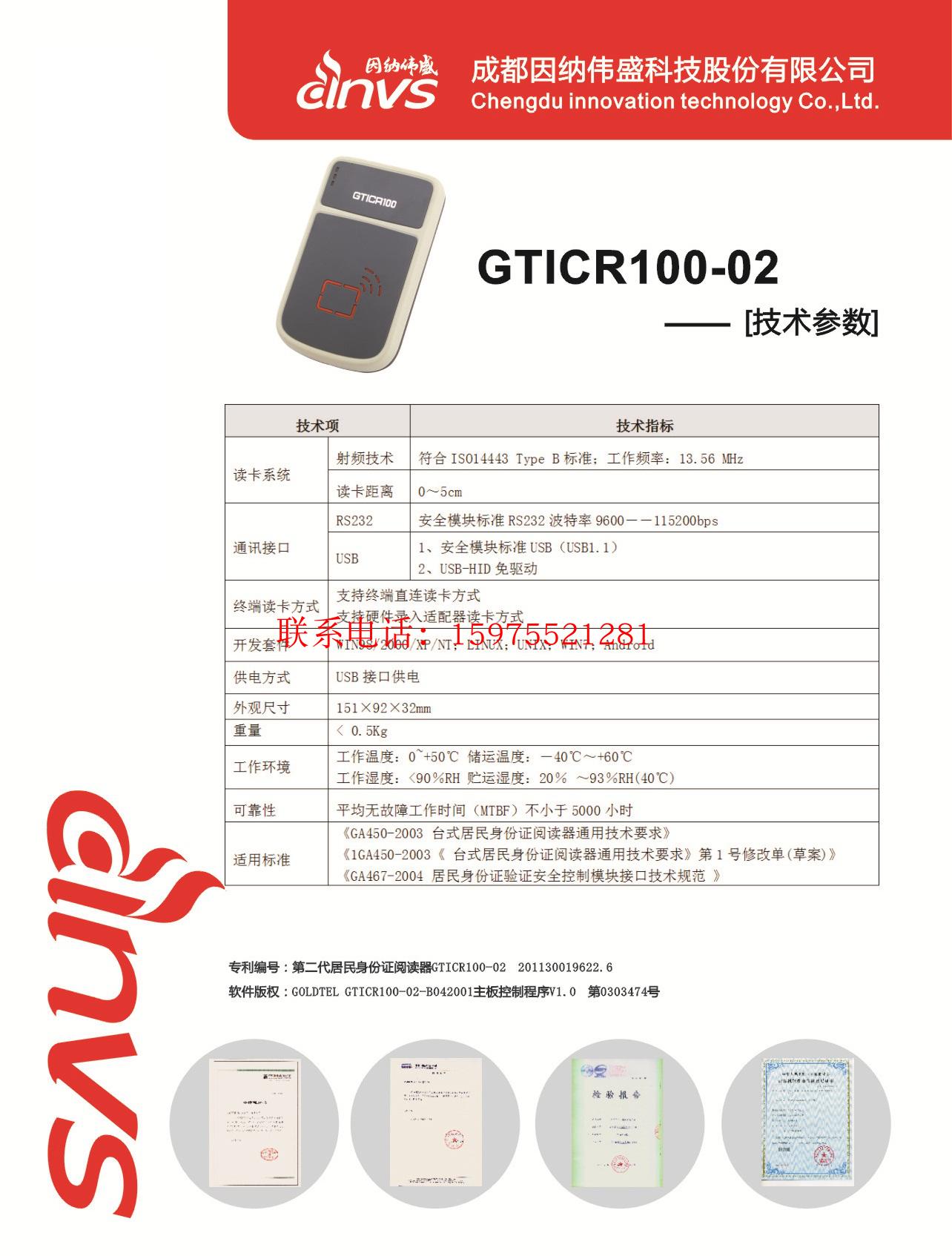 Inawei Sheng -02 Credential Recognition Instrument National Teng GTICR100-01 Second-generation Identity Card Reader Scanning Reader-Taobao