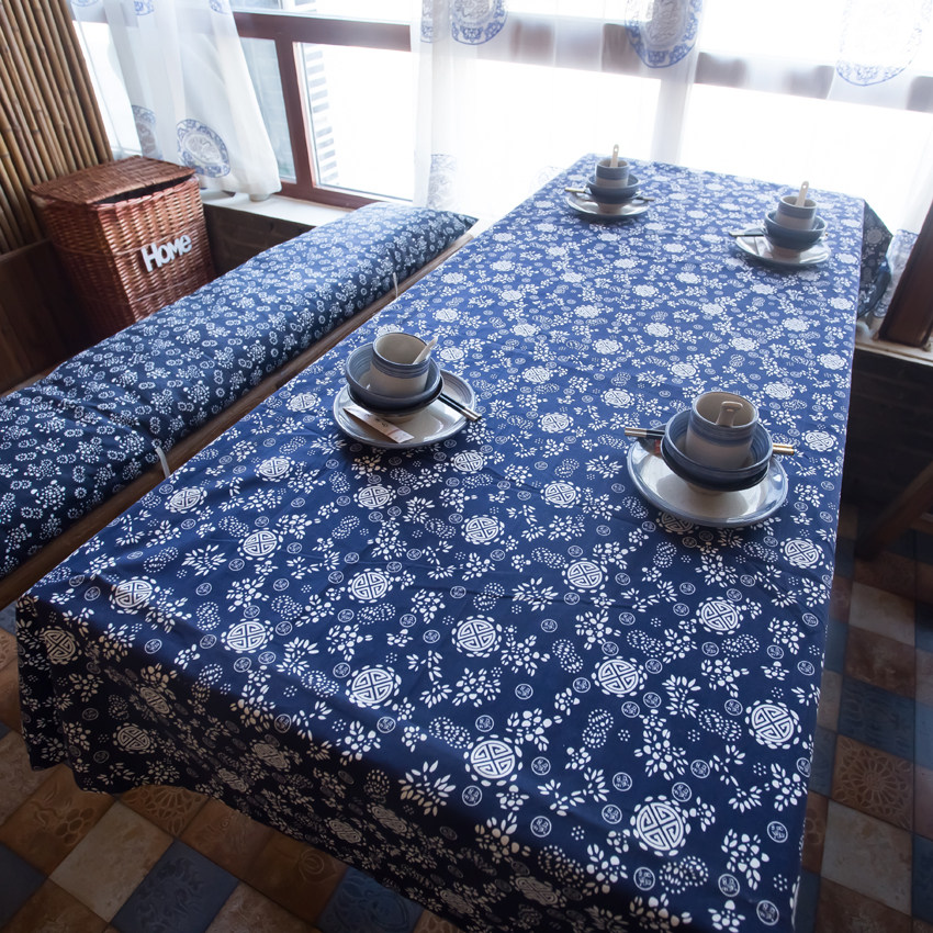 Cotton Numb Town Blue Little Crushed Flower Table Cloth Table Cloth Table Cloth Casual Farm Tea House Dining Hall Round Table Cloth Ethnic Fields Garden Wind Batik