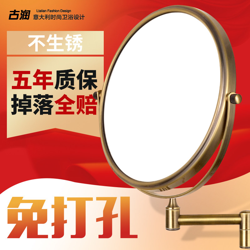 Toilet double-sided magnifying glass hanging wall Bathroom makeup mirror wall folding can be glued to the wall Dormitory household students