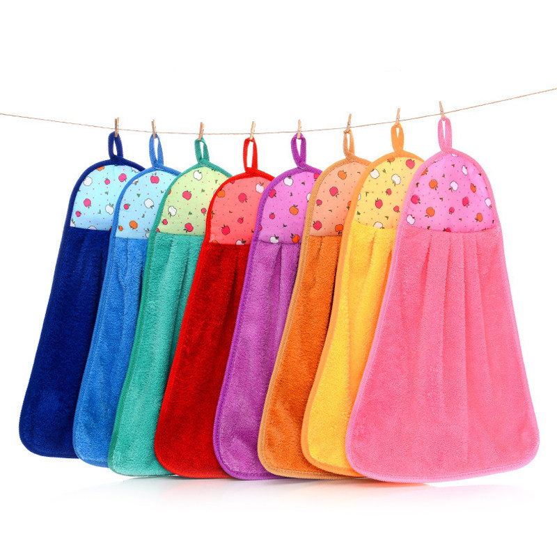 Hand towel Kitchen hand towel hanging coral velvet cute household thick super absorbent non-lint washing dish rag