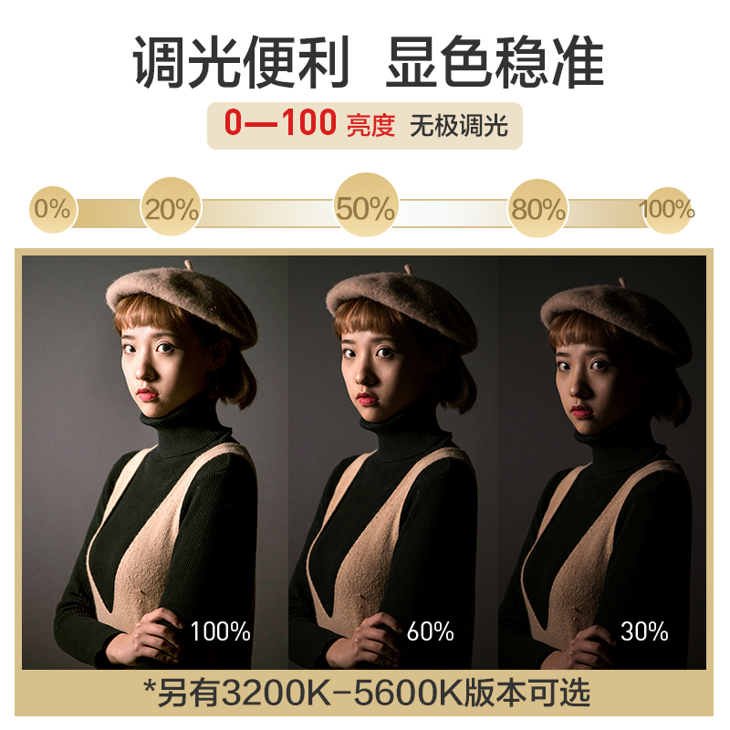 Standard white light (5500k 200k 200k or 5600K 5600K 200K) adjustable colour temperature