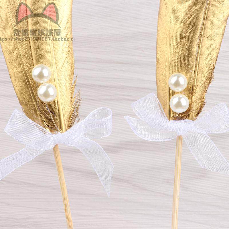 Party Birthday Cake Decoration Inserts Meritocracy Gold Feather Wedding Cake Decoration Creative Sweet Table Decoration