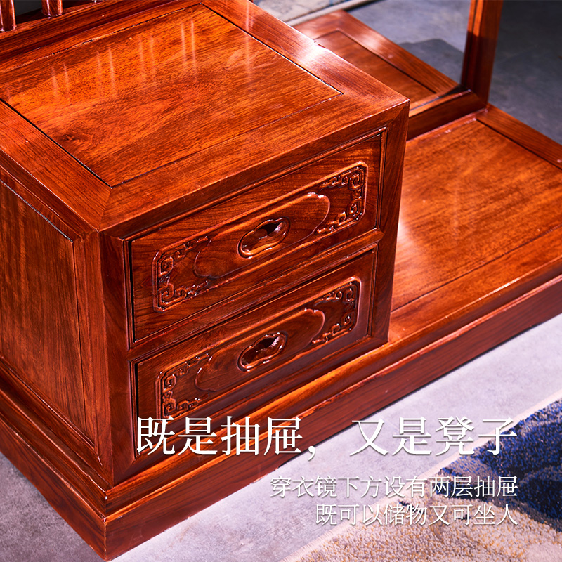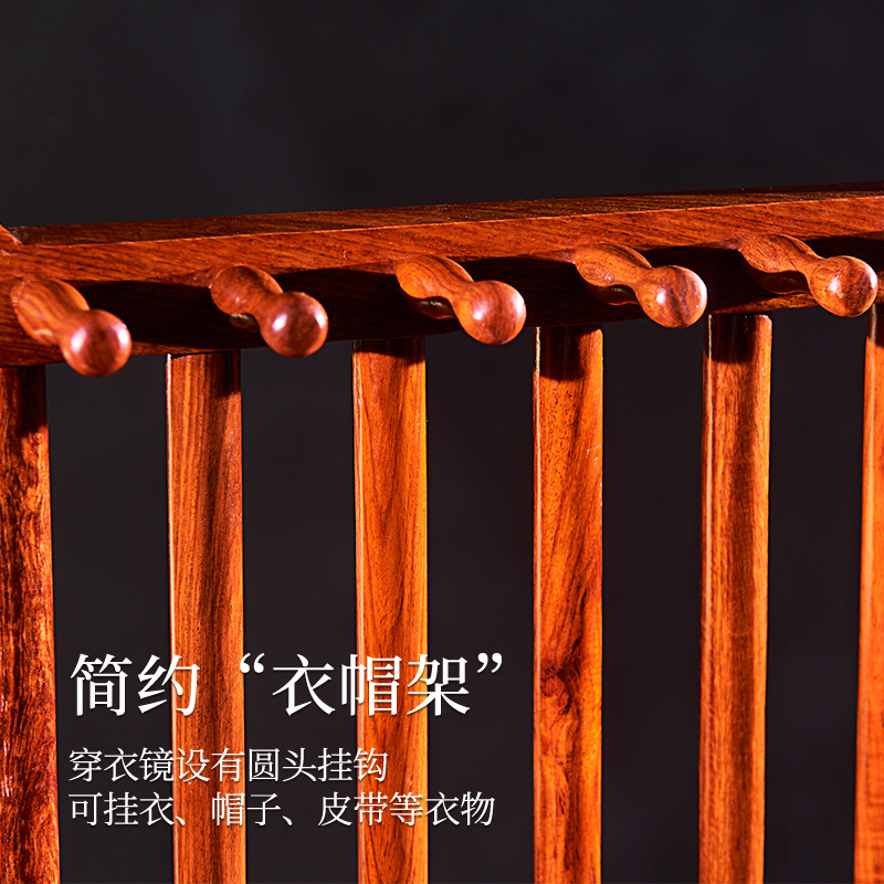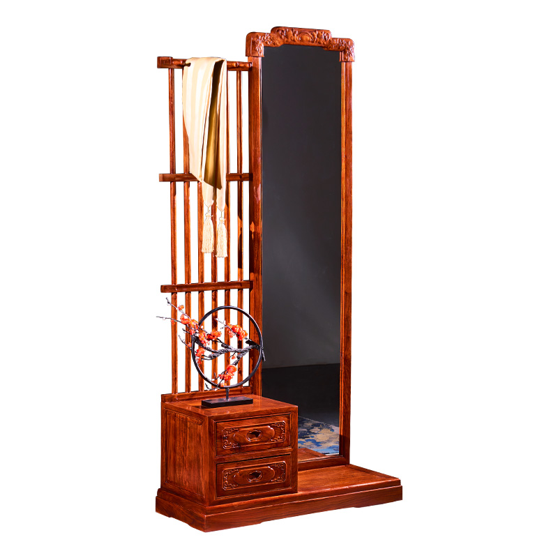 New Chinese style hedgehog red sandalwood full-length mirror coat rack one-body floor-to-ceiling mirror solid wood rosewood mahogany full-length mirror