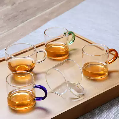 6 packs of heat-resistant glasses Kung Fu tea set Japanese-style thickened tea drinking belt Handle Tea tasting small teacup Master single