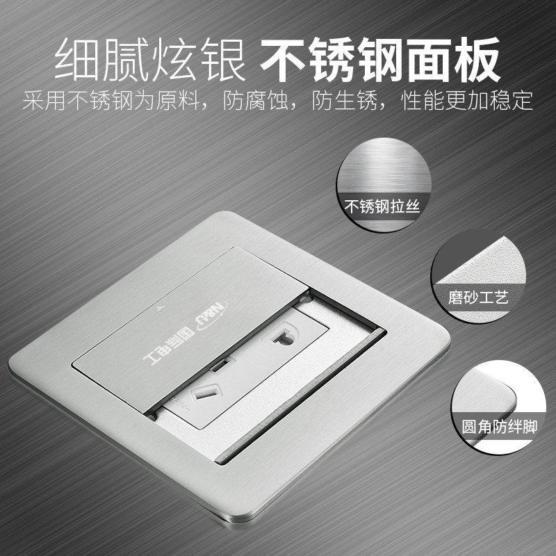 TCLQQT ground socket concealed ultra-thin double door ground plug 304 stainless steel ground socket waterproof five-hole ground plug