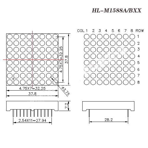 High-brightness 8x8 laser 3 75mm red and green two light 37 8 * 37 8mm 24 24 LED coyang module