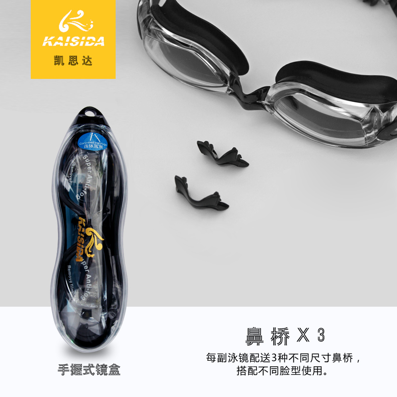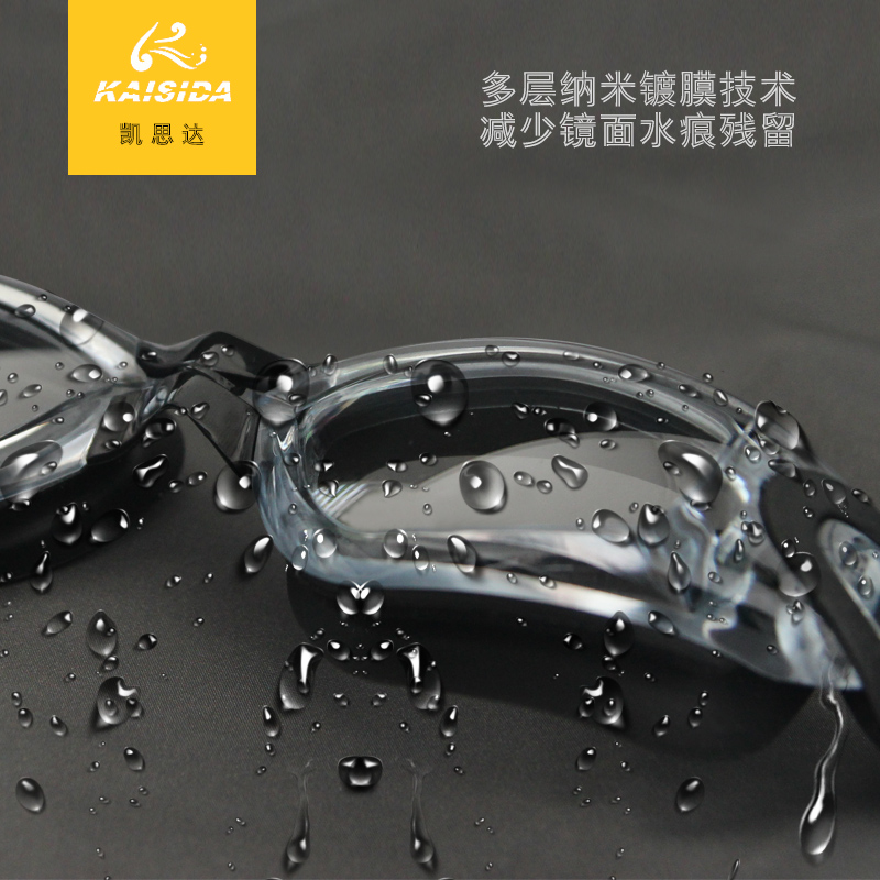 kaisida kethda waterproof anti-fog flat light swimming goggles male and female adults large frame clear swimming goggles