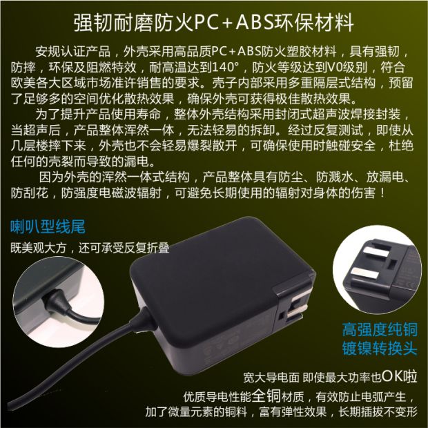 White Lenovo Thinkpad X1 Carbon power adapter T440 E431 square port with needle charging cable