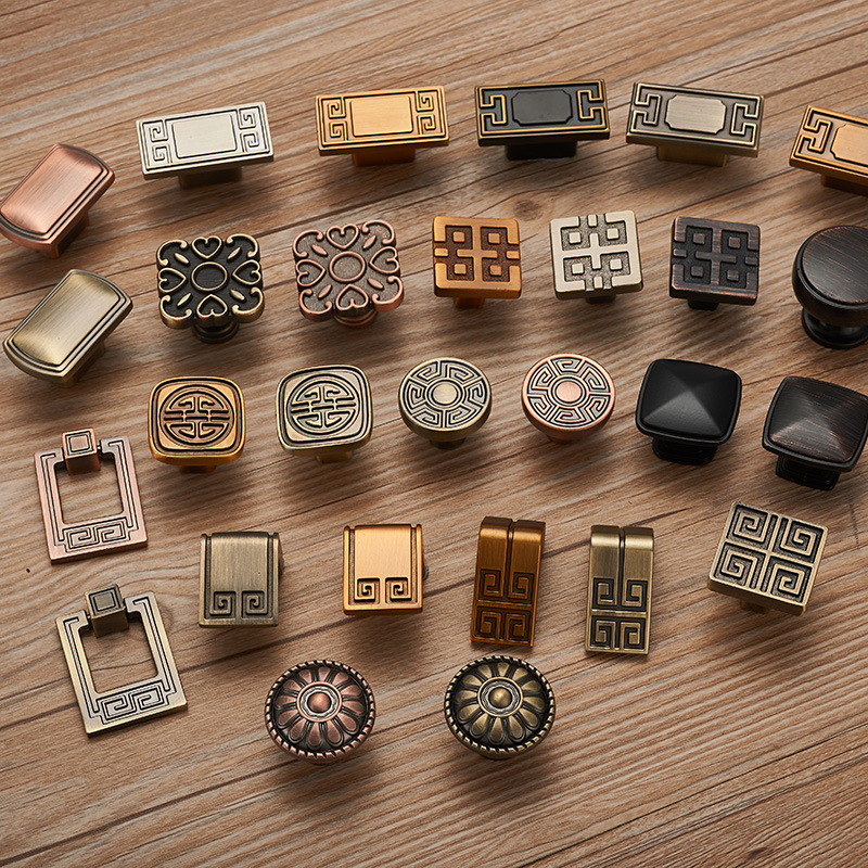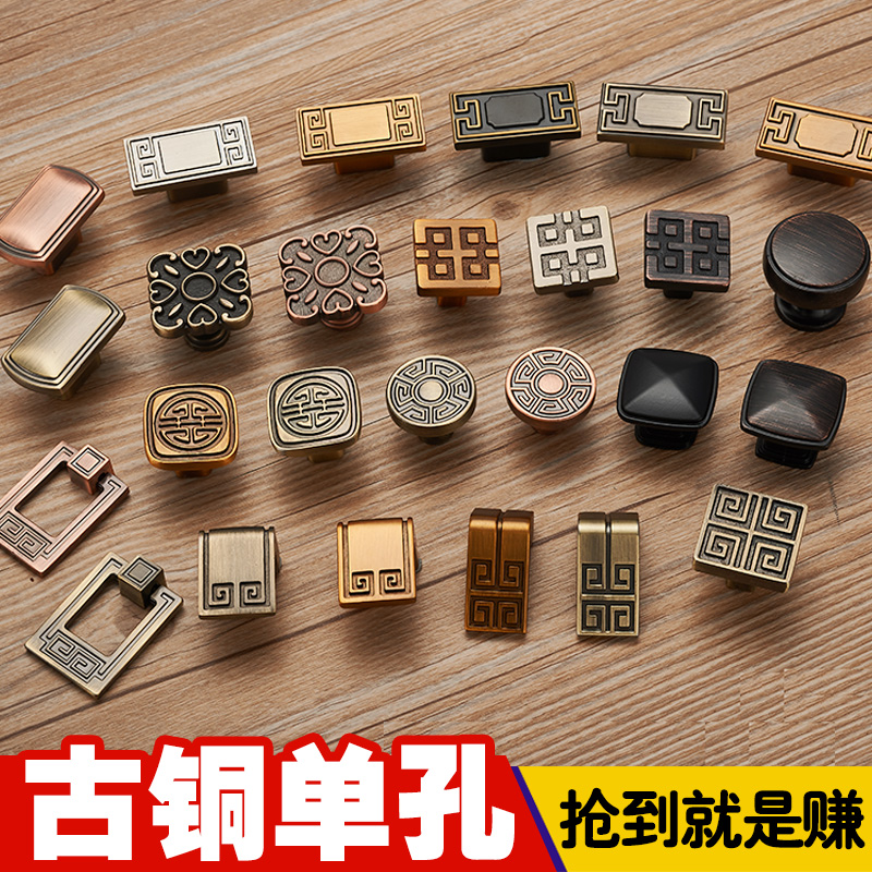Drawer handle single hole Chinese style wardrobe integral cupboard Qinggu bronze single-hole handle cabinet door Eurostyle cabinet handle American