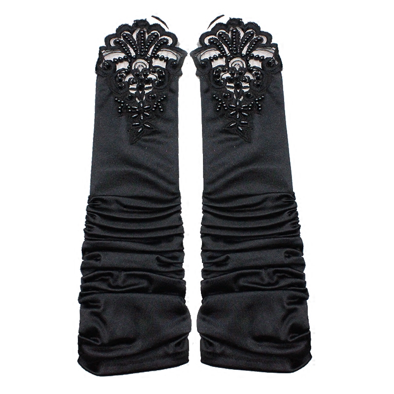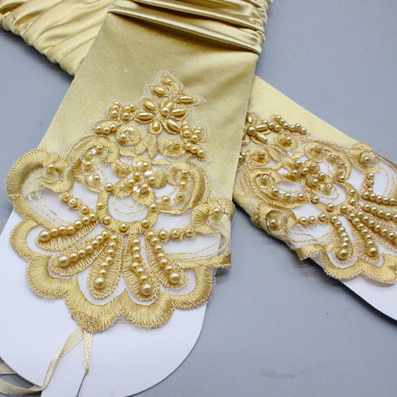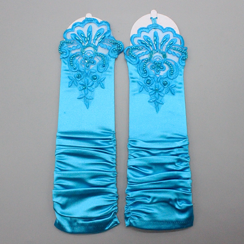 Liyuan fingerless wedding bride wedding gloves Multi-color tail single exquisite beaded tail pleated Satin dress gloves