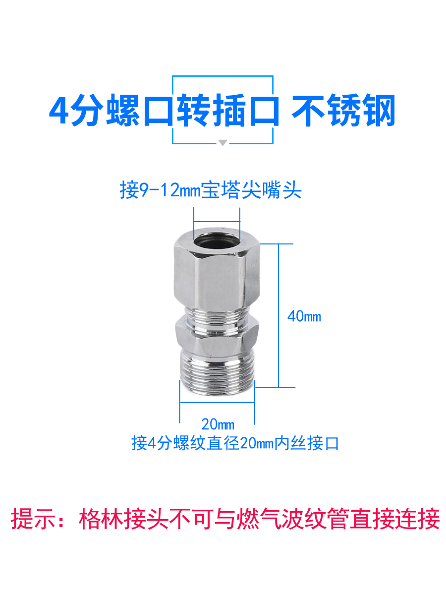 Natural gas pipe joint accessories Green conversion head natural gas stainless steel bellows 4-point screw-to-socket joint