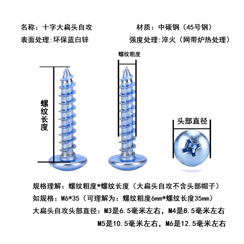 Plus hard plated blue zinc large flat head self-tapping screw high-strength cross wood tooth self tapping screw M4M5M6