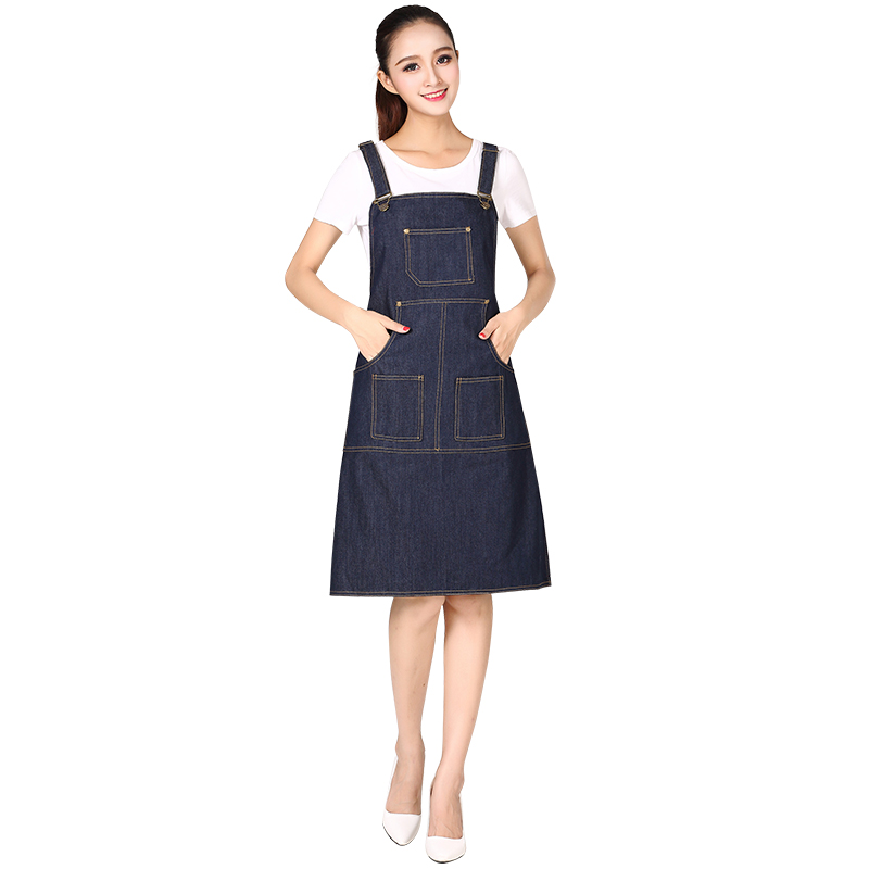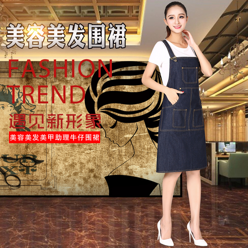 New denim apron Korean version of the fashion high-end hair salon hairdressing work clothes haircut assistant technician clothing management shop apron