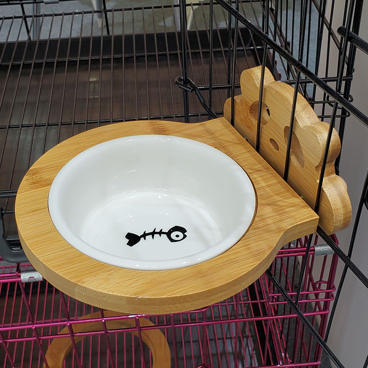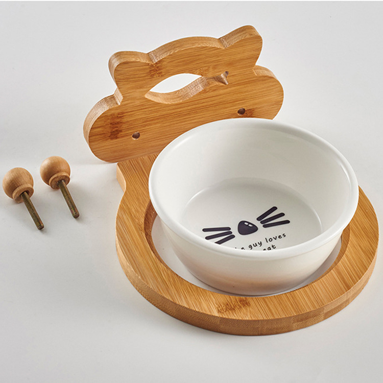 Bamboo Wood Shelf Stationary neck Pet Ceramic Bowl cat Bowl Bowl Water Bowl water Bowl Pooch Hanging Pet Bowl