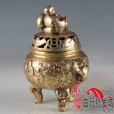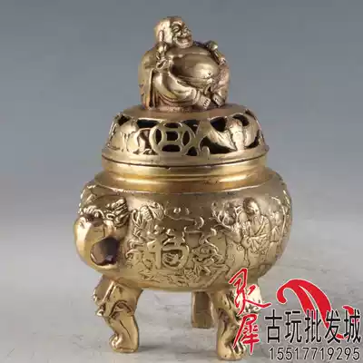 Special boutique brass Fu Lu Shou incense burner decoration Maitreya Buddha incense burner craft gifts antique collectibles