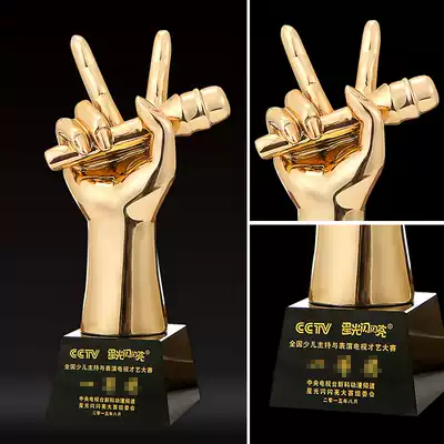 Good sound resin trophy custom gold microphone singing music singer competition award creative crystal medal custom