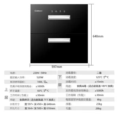 Canbo Kangbao disinfection cabinet embedded household kitchen disinfection bowl and plate cabinet large capacity 100 high temperature two-star