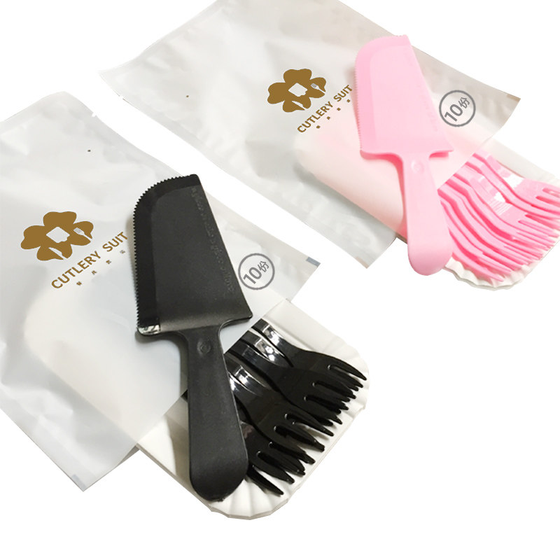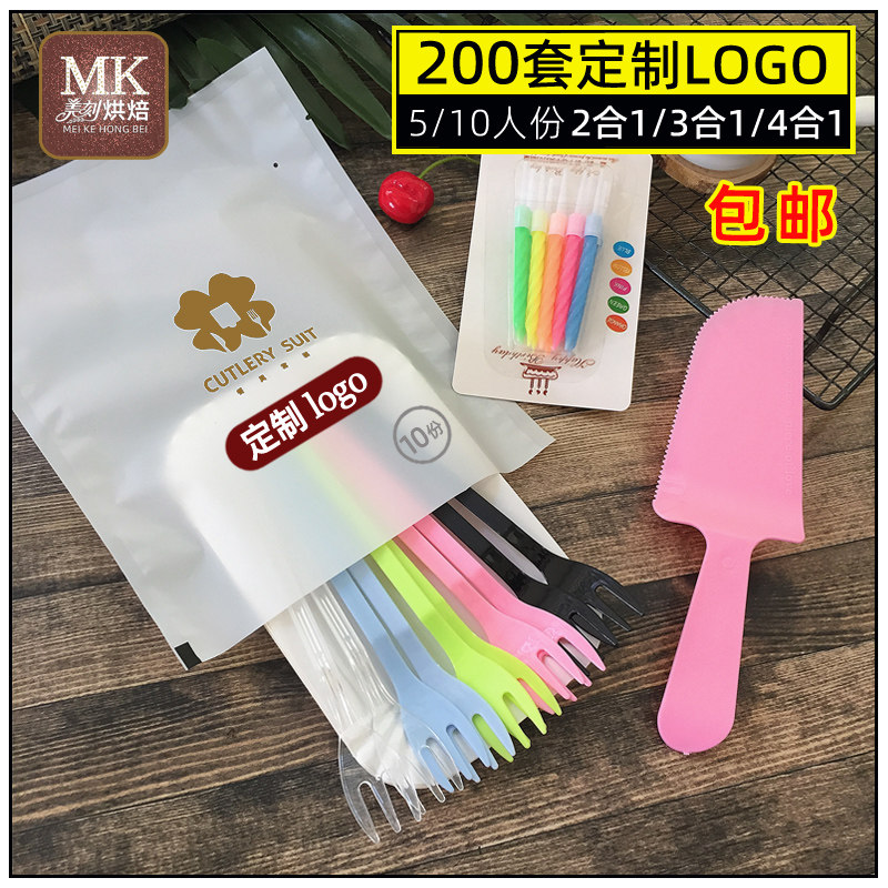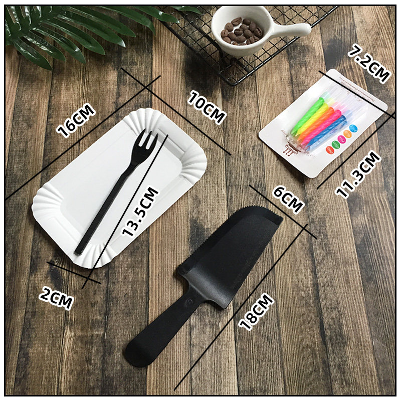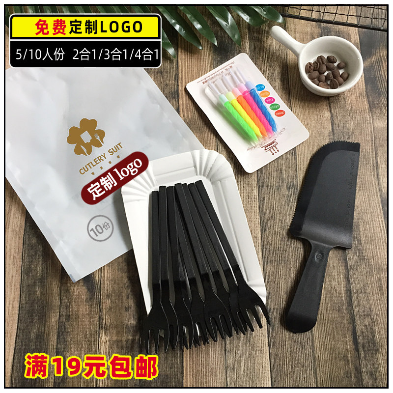 Four-in-one cake knife fork set upscale disposable cake Knife Fork Tray Suit Birthday Cake fork Dish Wax