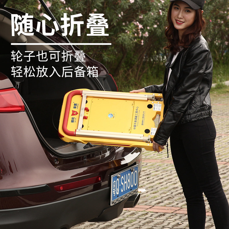 Shun and Che Baobao on-board trolley folding portable flat small pull car with early warning multifunction aluminum alloy pull-lever car