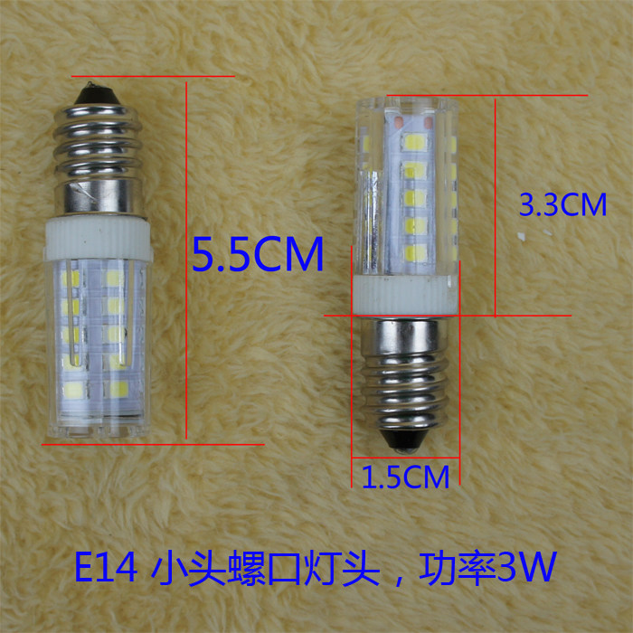 3W E14 small head fine mouth screw total length 5 5CM12W E14 small head total length 9 3CNE27 Head 12W Total length 8 7CM Foshan LED Refrigerator