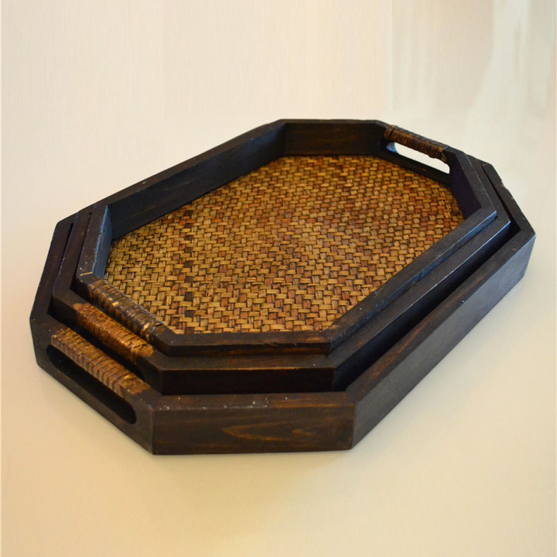 Household tray wooden tea tray Nordic wooden Thai rattan tray Southeast Asian style hotel club tea tray essential oil