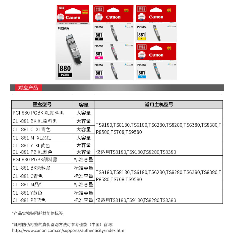 881PB photo blue (simple) original clear stock PGI-880PGBK standard document black CLI-881BK standard photo black CLI-881C