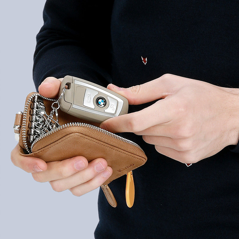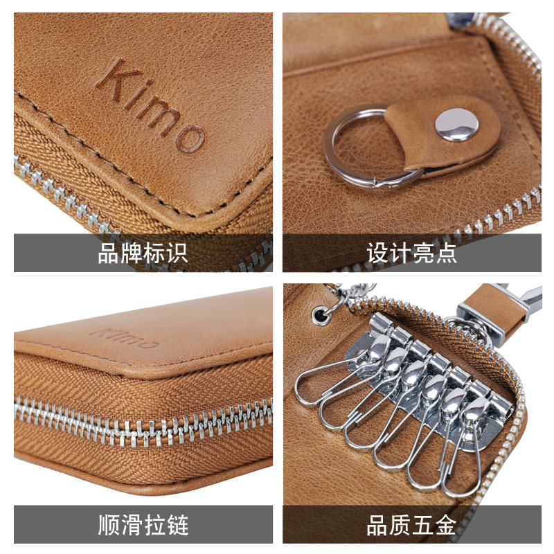 KIMO New Bull Leather Bracelet Key Bag Men's Waist Hanging Brief About Mini Genuine Leather Women Multifunction Lock Spoon Buckle