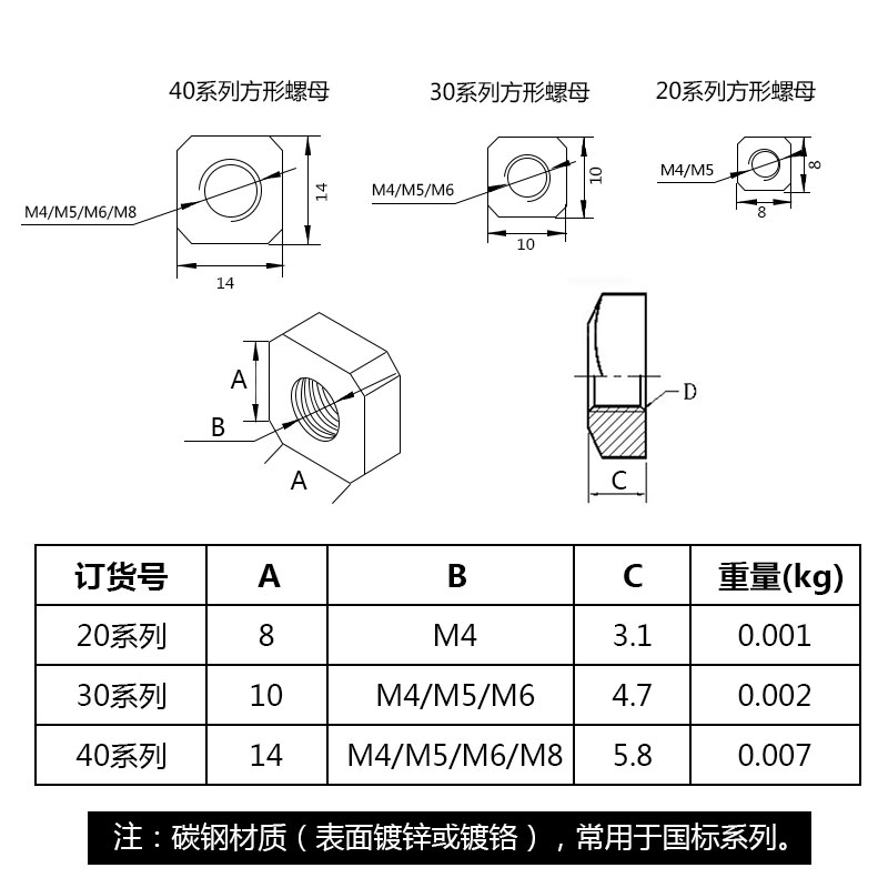 M4 (national standard 20 series) M4 (national standard 30 30 series) M5 M6 (national standard 30 series) M4 (national standard 40 series) M5 (national standard 40 series) M5 (national standard 40 series)