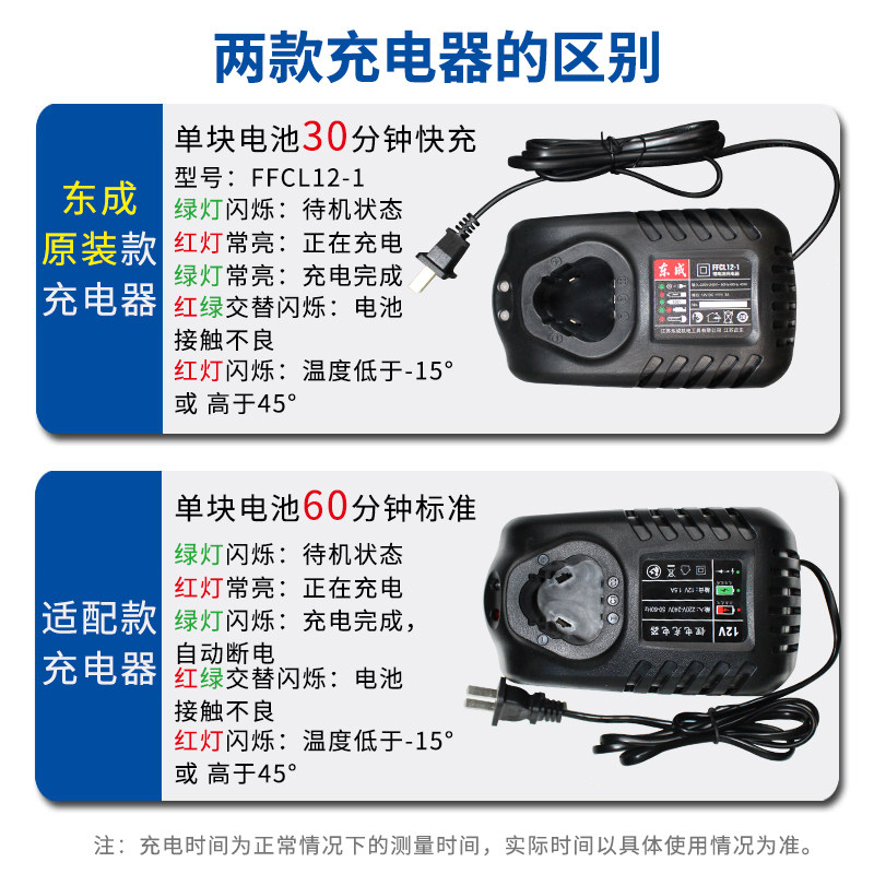 Dongcheng charging hand drill 12V charger lithium battery switch motor body FFCL12 Dongcheng original seat charging accessories