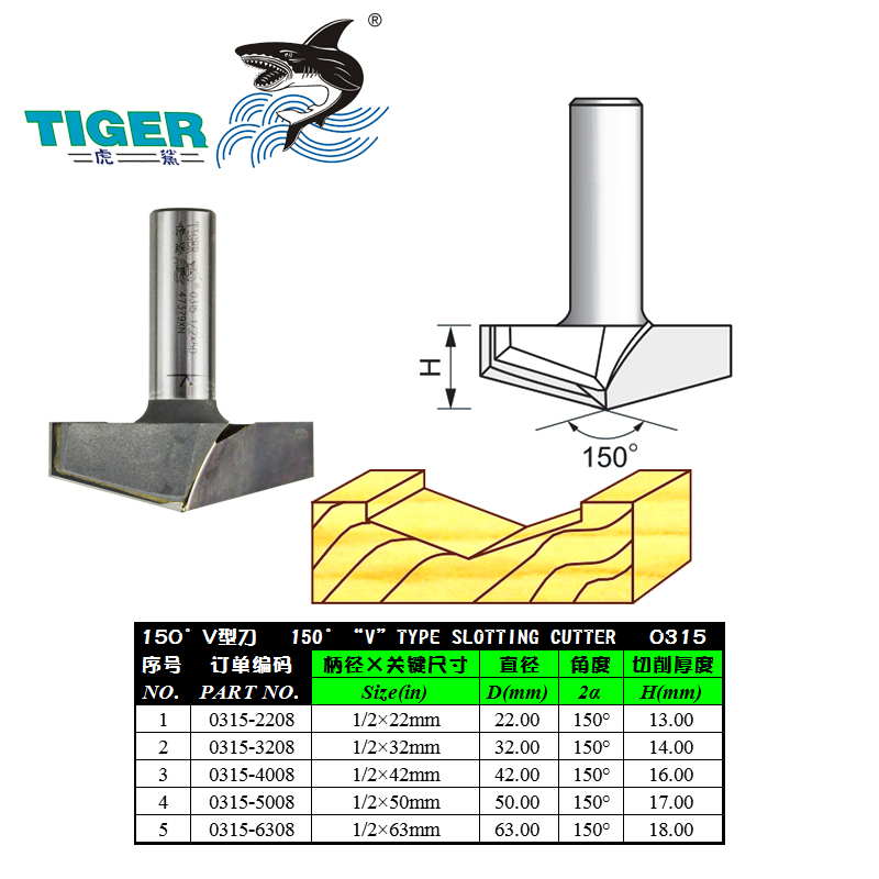 Tiger shark 150 ° V-type knife 0315 three-dimensional 3D engraving knife woodworking 150-degree reverse edge density plate numerical control cutter