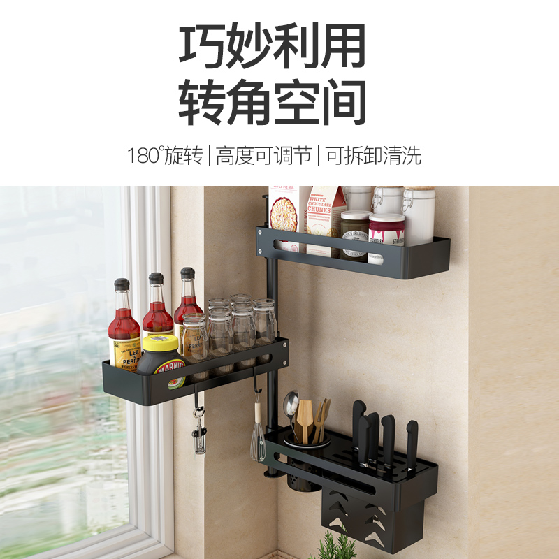 Magic Night Black] Double Layer Seasoning Can Rack*2 Get 2 Hooks Magic Night Black] Three-layer Seasoning Can Rack*3 Get 2 Hooks Magic Night Black] Three-layer Seasoning Can Rack*2 Knife Insert Chopsticks Holder*1