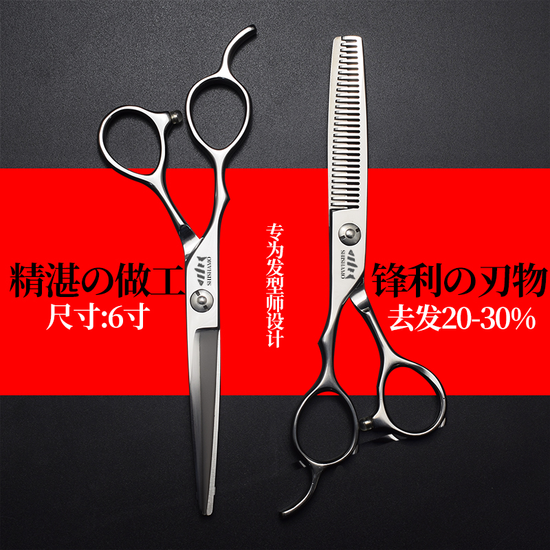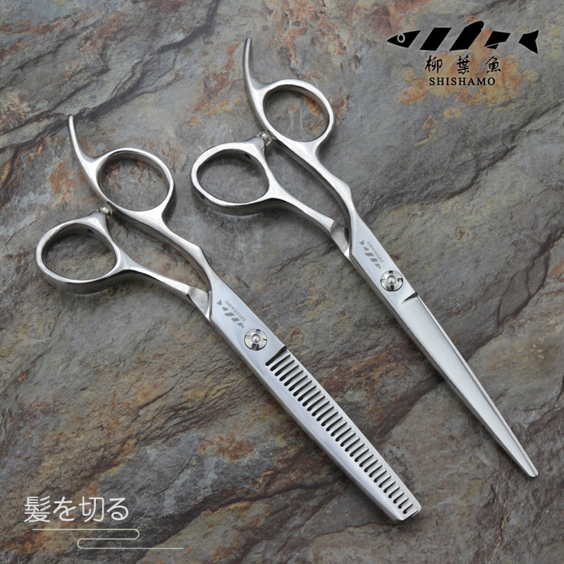Willow Leaf Fish Professional Left Hand Beauty Hair Scissors Haircut Scissors Suit Hairstylist Special Flat Cut Tooth Cut Suit