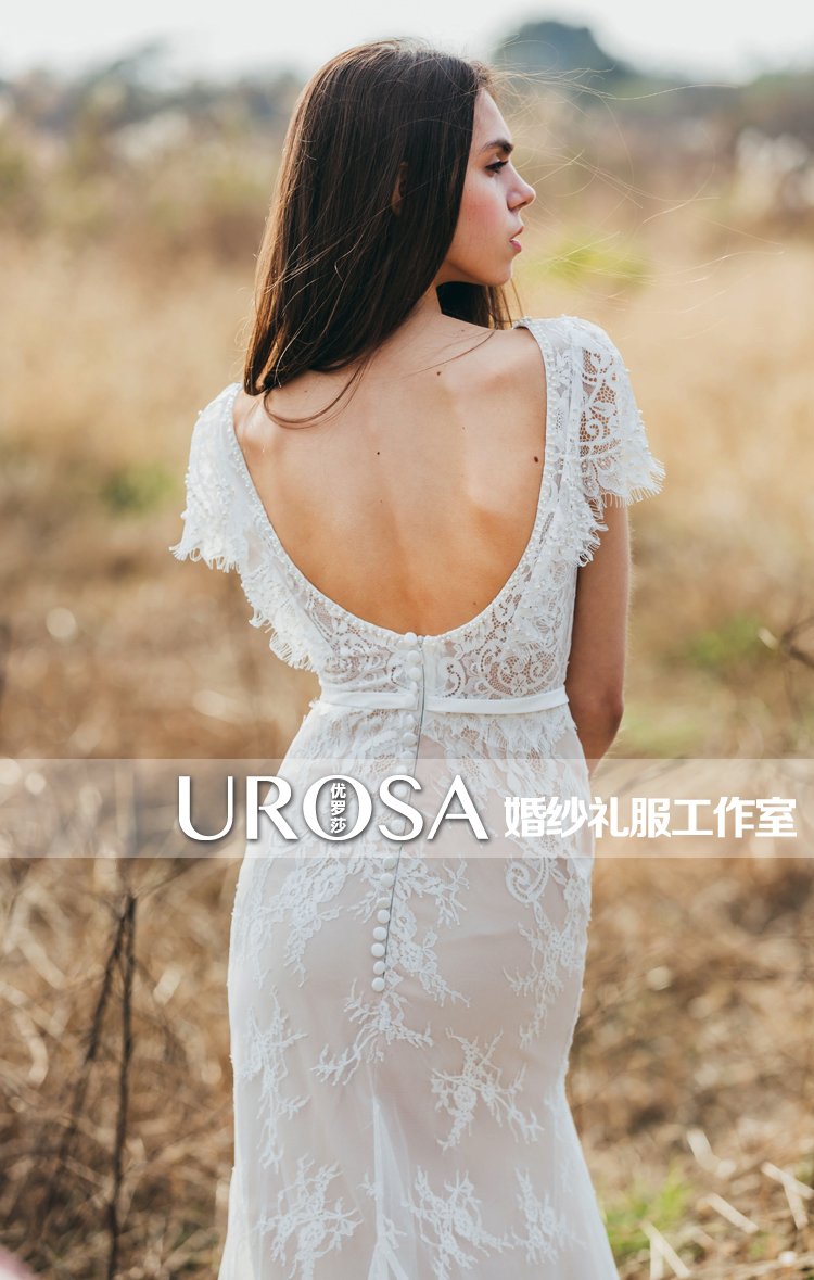 Urosa Original Real Shot Lotus Leaf Sleeve Slim Backless Elegant Mermaid Bride Outdoor Lawn Wedding Dress Travel Shot Light Yarn