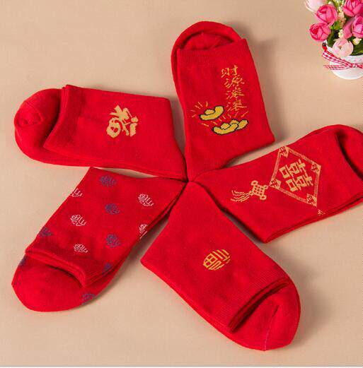This Life Year Great Red Socks Men And Women Socks Autumn Winter Mid-Cylinder Socks Pure Cotton Red Socks Wedding Joy Socks