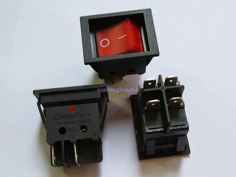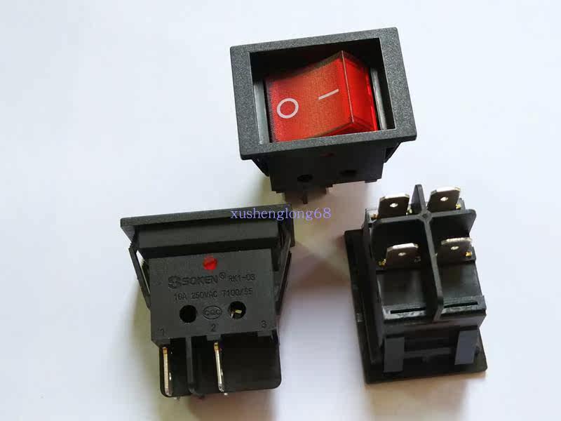Anti-mistouch rocker switch SOKEN rocker switch RK1-03B black red arc 2 gear 4 feet upscale board current 16A